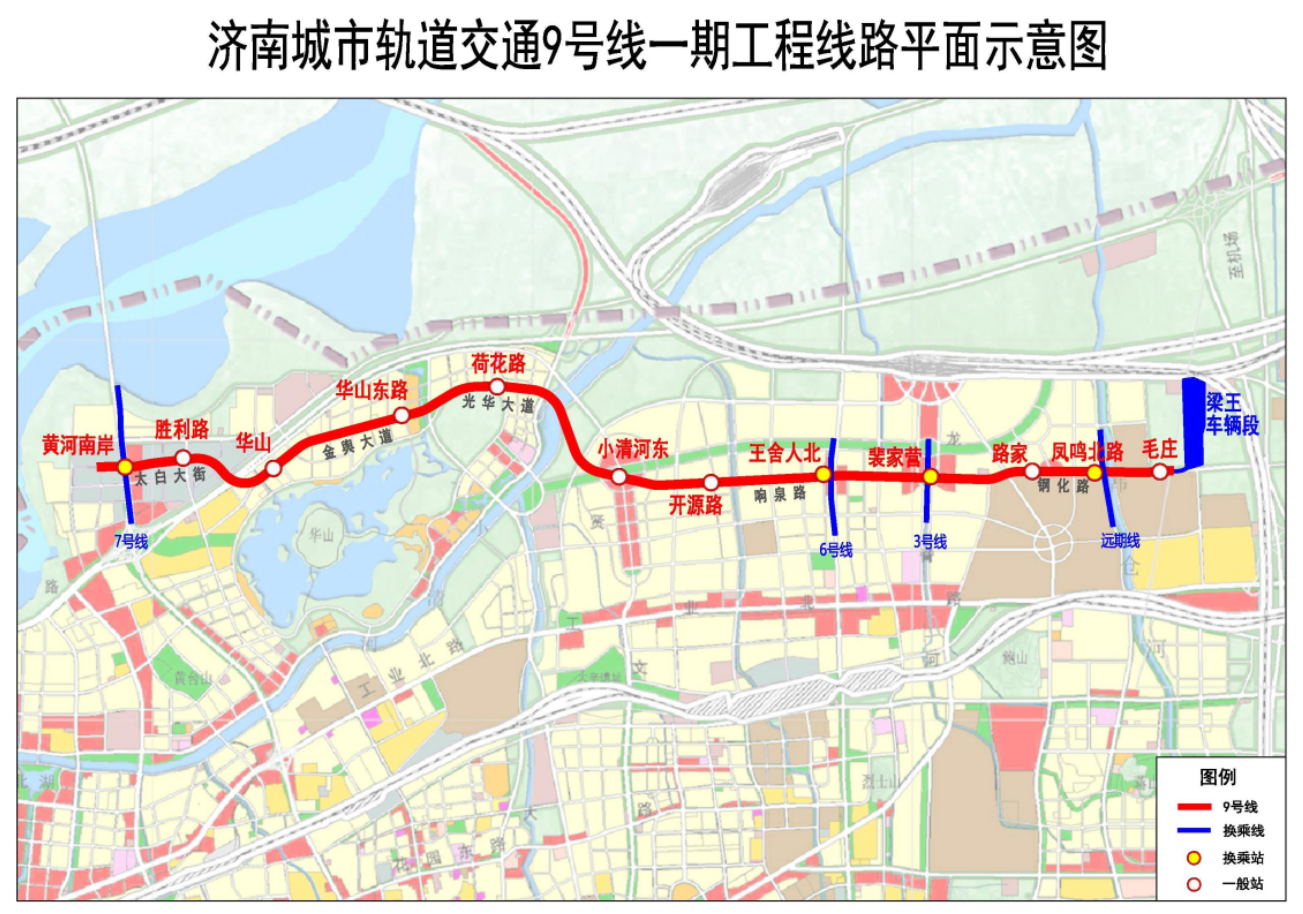 济南地铁9号线一期工程全长约15.7公里,设12座车站,串联起华山片区、济钢片区、新东站片区等城市发展重点区域,线路建成后,将有效填补济南东北部地铁网络的空白,显著提升市民跨区域通勤效率。