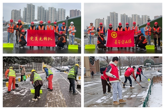 1月20日,南京市迎来今冬首场降雪,道路出现明显积雪与结冰。为确保极端天气下交通安全畅通、市民出行便利,并保障南京地铁11号线施工生产安全有序,南京项目部第一时间组织党员先锋队和青年突击队奔赴现场,开展道路除雪保畅行动。